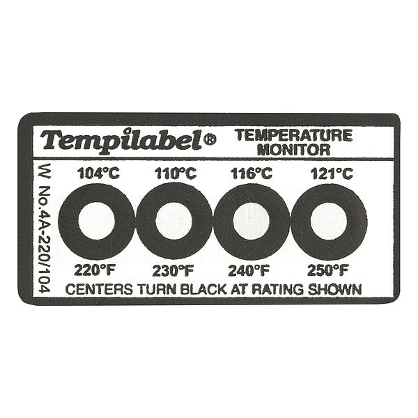 Non-Reversible Temp Indicator, General Purpose Non-Reversible Multi-Point, Number of Points 4, 200 Degrees F, 250 Degrees F, 300 Degrees F, 350 Degrees F, 93 Degrees C, 121 Degrees C, 149 Degrees C, 177 Degrees C, Vertical, Pack Quantity 10, 45 mm x 23 mm, Polyester, Strip, Package Quantity 10