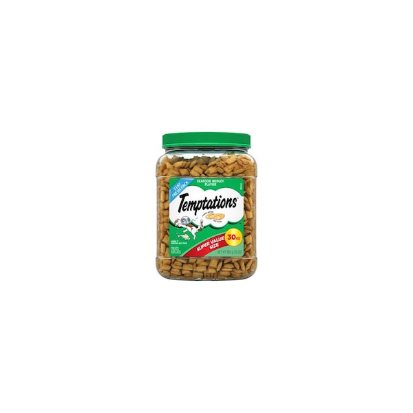 Temptations, 30 OZ, Seafood Medley Flavor Cat Treats, Crunchy Outside & Soft Center, 100% Nutritionally Complete & Have No Artificial Flavors, Delicious Combination Of Seafood Flavors In Every Bite, Super Value Size.