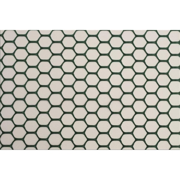 3'W x 25'L Poultry Fencing keeps poultry and small animals in pens or out of crops. Smaller hexagon openings (3/4" x 3/4") and a thicker design than bird fencing. Polyethylene material resists UV rays and will not rust or corrode like traditional chicken wire. Cuts easily with utility knife and leaves no sharp edges. Green color.