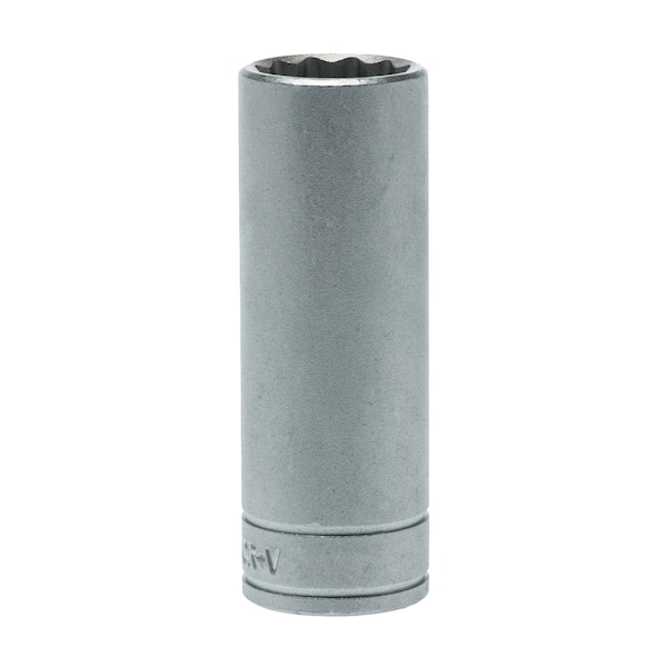 1/2 Inch Drive 12 point deep metric socket made from chrome vanadium with a satin finish. DIN 3120/3124/ISO 2730