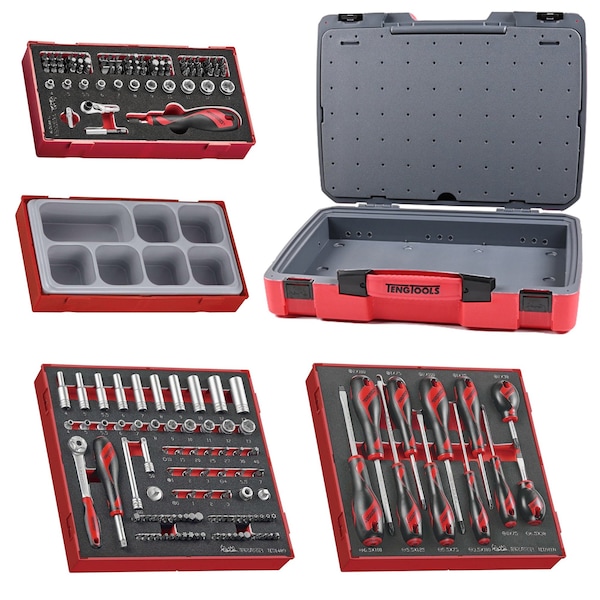Portable CaseHard-wearing case with moulded body for strength and durability.Secure lock system with click mechanism.Divider to secure the tools in each compartment.Retractable handle for comfort and support.Rubber feet to prevent the case from sliding and scratching.Hard wearing hinge with a metal pin.Fully recyclable to protect the environment. TED1489 - 89 Piece 1/4 Inch Drive Socket SetAccessories - 1/4 inch drive - 72 teeth ratchet, spinner handle, 2in. and 4in. extension bars, universal joint, coupler adaptor, 3/8in.F:1/4in.M adaptor, 1/4in.M:1/4in. hex adaptor.Regular sockets - 1/4 inch drive - 6 point - 4, 5, 5.5, 6, 7, 8, 9, 10, 11, 12, 13mm.Bit sockets - 1/4 inch drive - 4, 5.5, 7mm flat, TX10, TX15, TX20, TX25, TX27, TX30, TX40, PZ1, PZ2, PZ3, PH0, PH1, PH2, PH3.25mm bits - 1/4in. Hex Drive - 3, 4, 5.5, 7mm flat, TX8, TX10, TX15, TX20, TX25, TX27, TX30, TX40, TX45, PZ0, PZ1, PZ2, PZ3, PH0, PH1, PH2, PH3, PH4, 3, 4, 5, 6, 8, 10mm hex, 1/8in., 9/64in., 5/32in., 3/16in., 1/4in., 5/16in. hex, TPX10, TPX15, TPX20, TPX25, TPX27, TPX30, TPX40, spline 5 and 6.TED911N - 11 Piece Mixed Screwdriver SetScrewdrivers - flat type - round shaft - 3.5x100mm, 5.5x75mm, 6.5x38mm stubbyflat type - hexagon shaft - 5.5x125mm, 6.5x100mm.Screwdrivers - PH type - round shaft - PH0x75mm, PH1x75mm, PH2x75mmPH type - hexagon shaft - PH2x100mm.Screwdrivers - PZ type - round shaft - PZ1x75mmPZ type - hexagon shaft - PZ2x100mm.TEAMDQ78 - 78 Piece Bit Driver SetBits Driver Quick Chuck: 147mm.Rachet Head Hex/Square: 1/4”.Magnetic Bit Holder: 50mm.1/4M x 1/4Hex: 30mm.Regular Sockets 1/4 Drive 6 Point:4, 5, 5.5, 6, 7, 8, 9, 10, 11, 12, 13mm.Bits 25mm:Flat 0.6x3.5, 0.6x4.5, 0.8x4.0, 0.8x5.5, 1.0x5.5, 1.2x6.5, 1.6x8.0mm.PH1 x3pc, PH2 x6pc, PH3.PZ1 x3pc, PZ2 x6pc, PZ3.HEX2, 3, 4, 5, 6, 8mm.TX6, TX7, TX8, TX9, TX10, TX15,TX20 x3pc, TX25 x3pc, TX27, TX30, TX40TPX10, TPX15, TPX20 x2pc, TPX25 x2pc, TPX27, TPX30, TPX40PH2G x3pc.Square1, 2, 3.TT01 - Empty Storage Tray with 7 CompartmentsStorage tray with 7 separate compartments for easy storage.