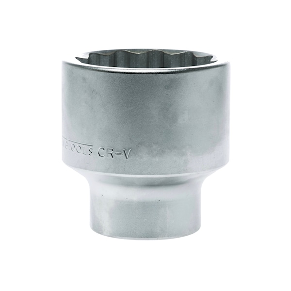 1 Inch drive 12 point regular metric socket made from chrome vanadium with a satin finish.