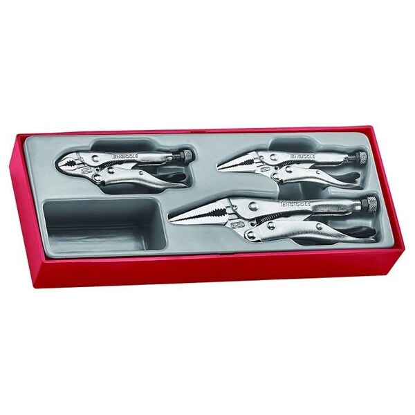 ( ROUND JAW PLIERS ) 2 x 4 standard round jaw pliers. ( LONG NOSE PLIERS ) 1 x long nose plier. ( ADDED STRENGTH ) Made from chrome vanadium for added strength. Stays adjusted for repetitive use. ( GREAT FOR TIGHTENING TWISTING ) Pliers are ideal for tightening, clamping, twisting and turning and provide maximum grip. ( TOTAL TOOL ORGANIZATION ) Supplied in a unique tool tray which features a removable lid and dove tail joints. The set can be used on its own as a standalone set or as part of our Get Organized system where all of our tool trays click together allowing you to build your ultimate tool setup. Lifetime warranty.