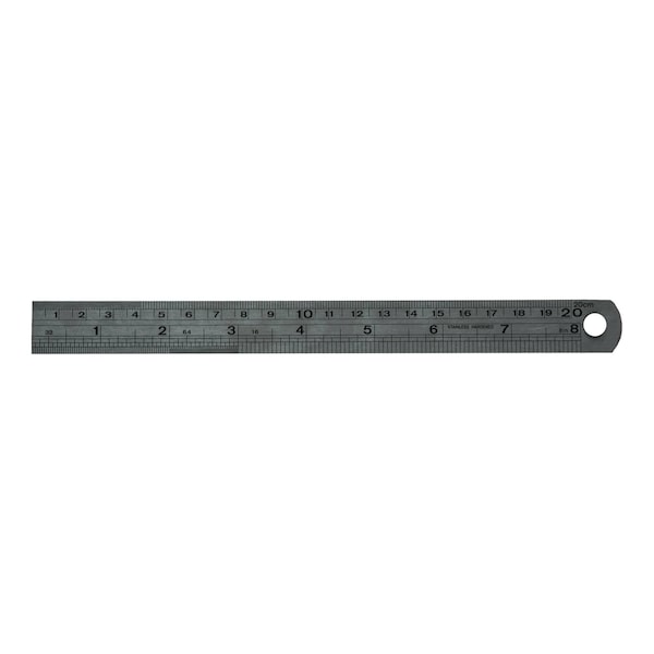 7.9 INCHES LONG Ideal for measuring and drawing straight lines. STAINLESS STEEL Made from premium stainless steel to avoid corrosion and will not bend. SAE & MM Features an SAE and metric measurement scale. HANGING HOLE Equipped with a hanging hole on one end for easy storage. MULTI-PURPOSE Ideal for mechanics, carpenters, engineers, crafters and students etc.
