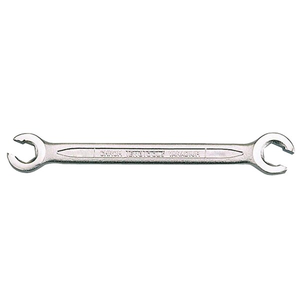 Double flare nut wrench with different size openings at each end. Made from chrome vanadium with a satin finish. DIN 3118.