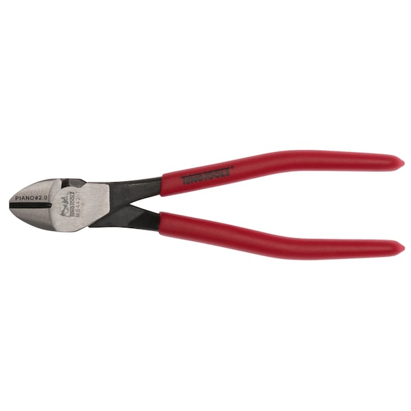 Heavy duty side cutting pliers. Features high carbon steel, an 80° cutting edge angle and titanium coated joints. Dipped handles Length : 7 Inches Cutting capacity piano wire: 2mm Cutting capacity hard wire: 2.5mm Cutting capacity medium wire: 4mm Cutting capacity soft wire: 4mm