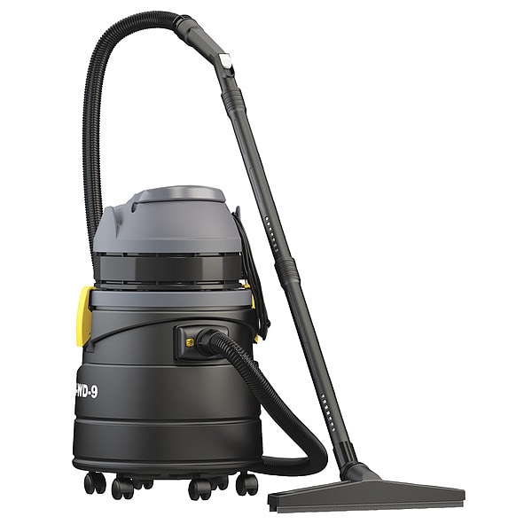 Shop Vacuum, Vacuum Power Source Corded, Vacuum Filtration Type Standard, Vacuum Pickup Type Wet/Dry, Vacuum Air Flow 118 cfm, Sound Level 72 dB, Tank Material Plastic, Tank Size 9 gal, Tank Dry Capacity 9 gal, Tank Wet Capacity 9 gal, Vacuum Collection Type Bagless, Motor Efficiency Type Brushed, Number of Motor Stages 2, Air Watts 1,200 W, Power 1,200 W, Current 10 A, Frequency 50 Hz, 60 Hz, Voltage 120V AC, Height 25 in, Length 15 1/2 in, Width 16 in, Weight 22 lb, Vacuum Hose Dia. 1 1/4 in