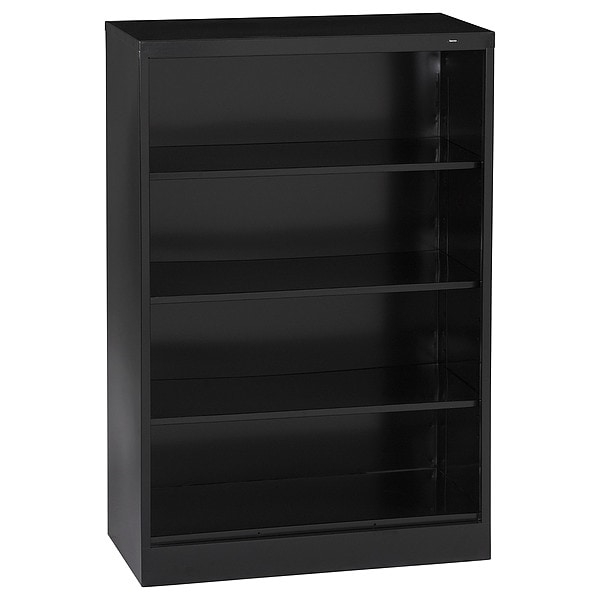 Bookcase, Product Type Bookcase, Material Carbon Steel, Number of Dividers 0, Overall Height 55 in, Overall Depth 18 in, Overall Width 36 in, Caster Type Not Applicable, Color Black, Back Style Closed, Number of Shelves 3, Weight Capacity 600 lb, Shelf Adjustment Increment 2 1/16 in, Standards Not Applicable, Shelf Capacity 150 lb, Assembly Assembled, Caster Material Not Applicable, Depth Form Factor Legal, Distance Between Dividers Not Applicable, Divider Adjustment Increment Not Applicable