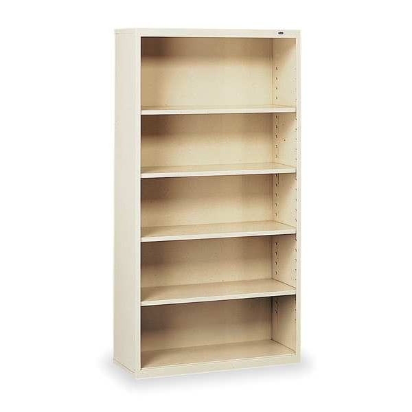Bookcase, Product Type Bookcase, Material Steel, Number of Dividers 0, Overall Height 66 in, Overall Depth 13 1/2 in, Overall Width 34 1/2 in, Caster Type Not Applicable, Color Champagne, Back Style Closed, Number of Shelves 4, Weight Capacity 650 lb, Shelf Adjustment Increment 2 1/16 in, Standards Not Applicable, Shelf Capacity 130 lb, Assembly Assembled, Caster Material Not Applicable, Depth Form Factor Legal, Distance Between Dividers Not Applicable