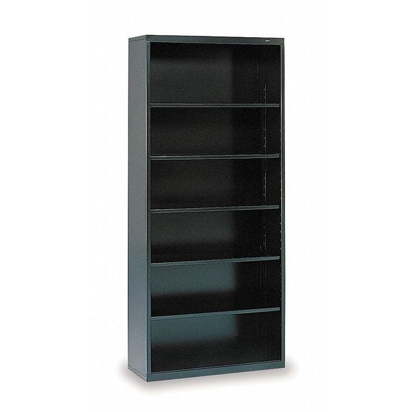 Bookcase, Product Type Bookcase, Material Steel, Number of Dividers 0, Overall Height 78 in, Overall Depth 13 1/2 in, Overall Width 34 1/2 in, Caster Type Not Applicable, Color Black, Back Style Closed, Number of Shelves 5, Weight Capacity 780 lb, Shelf Adjustment Increment 2 1/16 in, Standards Not Applicable, Shelf Capacity 130 lb, Assembly Assembled, Caster Material Not Applicable, Depth Form Factor Legal, Distance Between Dividers Not Applicable, Divider Adjustment Increment Not Applicable