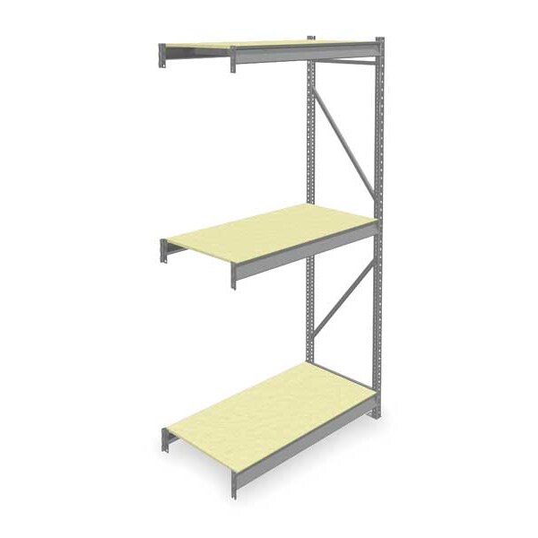 Bulk Storage Rack, Shelving Type Add-On, Overall Width 48 in, Overall Depth 24 in, Overall Height 96 in, Decking Material Particleboard, No. of Shelves 3, Shelf Capacity 4150 lb, Load Capacity 12,450 lb, Shelving Frame Material Steel, Gray, Finish - Shelving and Racks Powder Coated, Shelf Adjustments 2 in, For Use With Tennesco Bulk Storage and Boltless Racks, Includes (3) Shelves, End Frame
