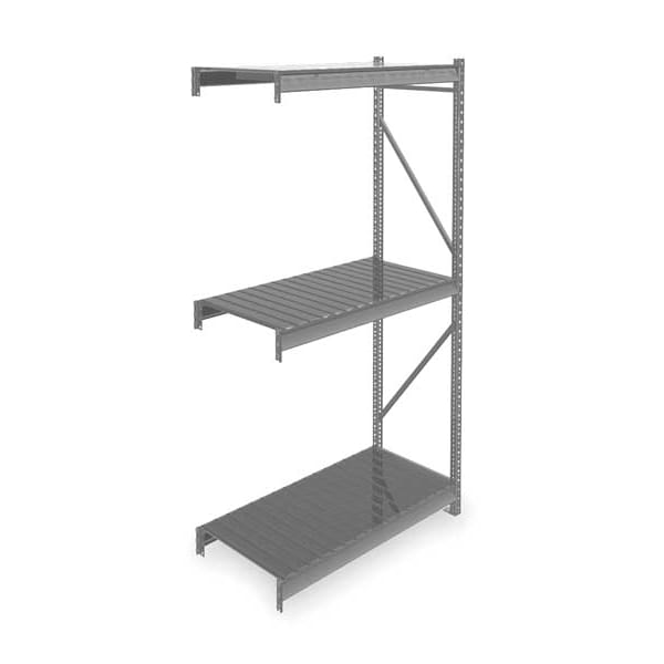 Bulk Storage Rack, Shelving Type Add-On, Overall Width 48 in, Overall Depth 24 in, Overall Height 96 in, Decking Material Steel, No. of Shelves 3, Shelf Capacity 4150 lb, Load Capacity 12,450 lb, Shelving Frame Material Steel, Gray, Finish - Shelving and Racks Powder Coated, Shelf Adjustments 2 in, Shelving Gauge 22, For Use With Tennesco Bulk Storage and Boltless Racks, Includes (3) Shelves, End Frame