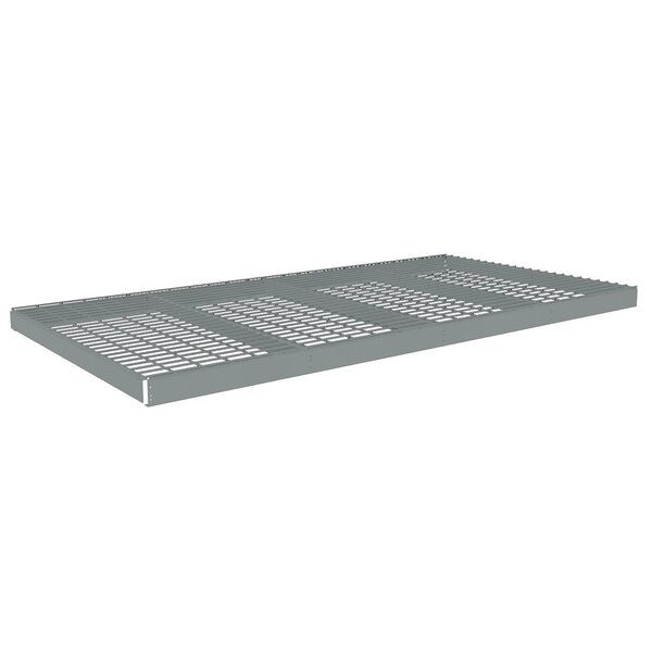 Shelf, Gray, Decking Style Wire, Steel, Zinc Plated Decking Finish, 5 ga, Single Straight, Zinc Plated, Frame Material Steel, Overall Height 3 1/4 in, Overall Width 96 in, Overall Depth 48 in, Load Capacity 1,600 lb, Includes (2) Angle Beams, (2) Channel Beams, (3) Front to Back Deck Supports