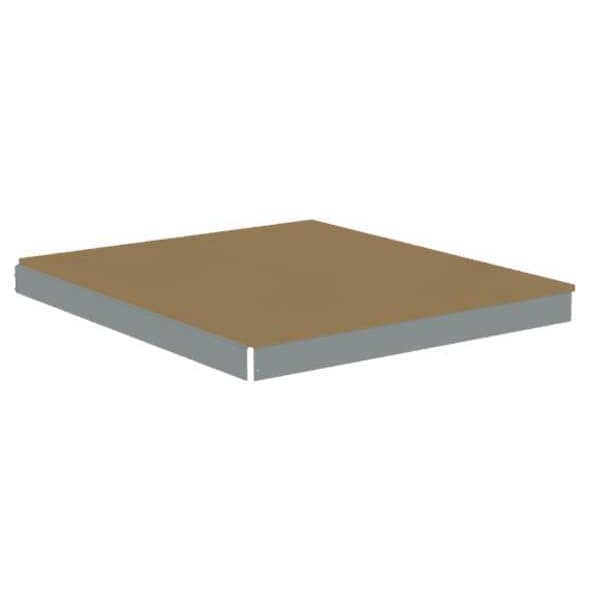 Shelf, Gray, Particleboard, Unfinished Decking Finish, Single Straight, Zinc Plated, Frame Material Steel, Overall Height 3 1/4 in, Overall Width 48 in, Overall Depth 30 in, Load Capacity 2,250 lb, Includes (4) Beams