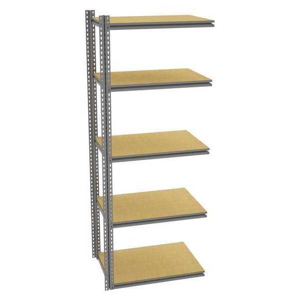 Boltless Shelving, Z-Beam, Overall Depth 24 in, Overall Height 96 in, Overall Width 36 in, Shelf Gauge 14 ga, Shelf Adjustment Increments 1 1/2 in, Steel, Particleboard, Steel, (2) Posts, (5) Deck Levels, Includes Decking Yes, 1,000 lb, Whole Unit Load Capacity 5,000 lb, Add-On, Open, SCS Indoor Advantage(R) Certified, Post Gauge 16 ga, Number of Shelves 5, Maximum Post Load Capacity 8,000 lb with Beams Evenly Spaced at 24 in, Powder Coated, Medium-Duty, Gray