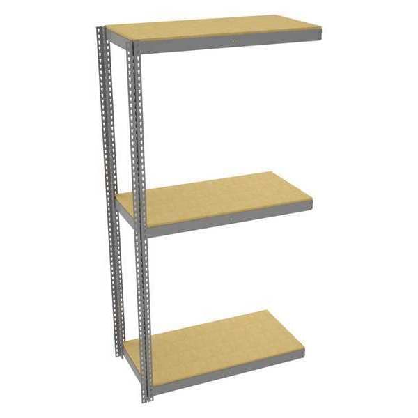 Boltless Shelving, Angle, Overall Depth 24 in, Overall Height 96 in, Overall Width 48 in, Shelf Gauge 14 ga, Shelf Adjustment Increments 1 1/2 in, Steel, Particleboard, Steel, (2) Posts, (3) Deck Levels, Includes Decking Yes, 2,250 lb, Whole Unit Load Capacity 6,750 lb, Add-On, Open, SCS Indoor Advantage(R) Certified, Post Gauge 16 ga, Number of Shelves 3, Maximum Post Load Capacity 8,000 lb with Beams Evenly Spaced at 24 in, Powder Coated, Heavy-Duty, Gray