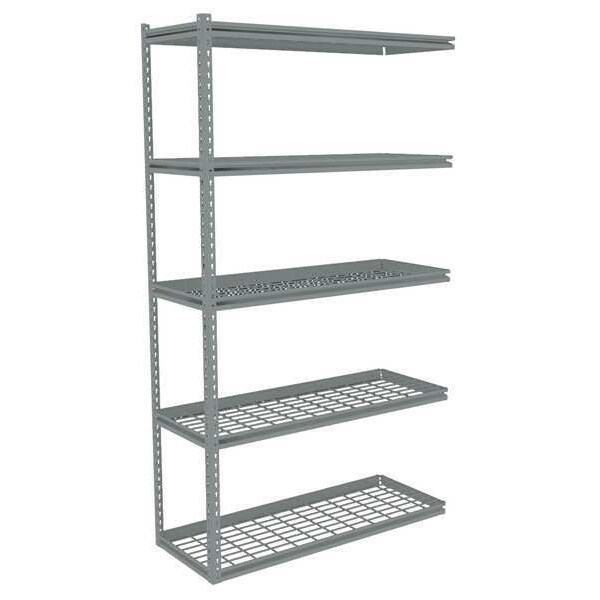 Boltless Shelving, Z-Beam, Overall Depth 18 in, Overall Height 84 in, Overall Width 48 in, Shelf Gauge 14 ga, Shelf Adjustment Increments 1 1/2 in, Steel, Steel, Steel, (2) Posts, (20) Beams, Includes Decking Yes, 850 lb, Whole Unit Load Capacity 4,250 lb, Add-On, Open, SCS Indoor Advantage(R) Certified, Post Gauge 16 ga, Number of Shelves 5, Maximum Post Load Capacity 8,000 lb with Beams Evenly Spaced at 24 in, Powder Coated, Medium-Duty, Gray