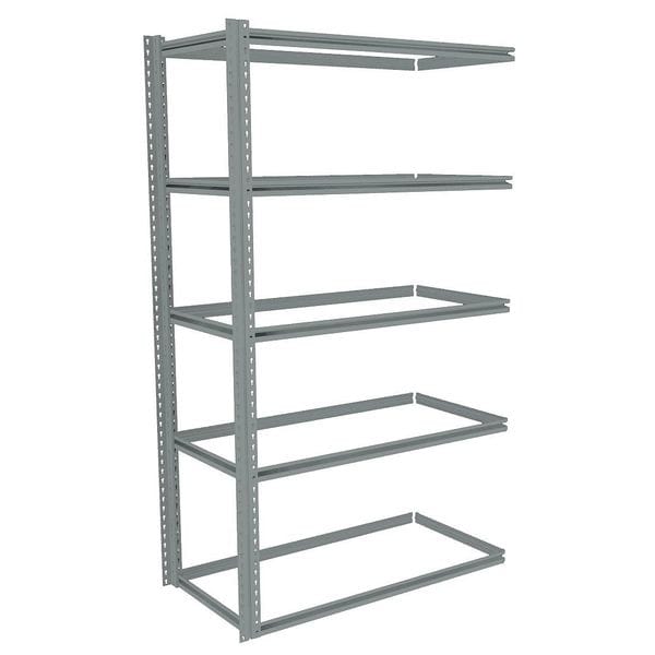 Boltless Shelving, Z-Beam, Overall Depth 24 in, Overall Height 84 in, Overall Width 48 in, Shelf Gauge 14 ga, Shelf Adjustment Increments 1 1/2 in, Steel, None, Steel, (2) Posts, (5) Medium Profile Deck Levels, Includes Decking No, 850 lb, Whole Unit Load Capacity 4,250 lb, Add-On, Open, SCS Indoor Advantage(R) Certified, Post Gauge 16 ga, Number of Shelves 5, Maximum Post Load Capacity 8,000 lb with Beams Evenly Spaced at 24 in, Powder Coated, Medium-Duty, Gray
