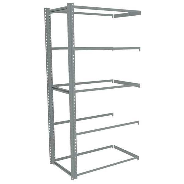 Boltless Shelving, Low Profile, Overall Depth 30 in, Overall Height 84 in, Overall Width 48 in, Shelf Gauge 14 ga, Shelf Adjustment Increments 1 1/2 in, Steel, None, Steel, (2) Posts, (20) Beams, Includes Decking No, 750 lb, Whole Unit Load Capacity 3,750 lb, Add-On, Open, SCS Indoor Advantage(R) Certified, Post Gauge 16 ga, Number of Shelves 5, Maximum Post Load Capacity 8,000 lb with Beams Evenly Spaced at 24 in, Powder Coated, Medium-Duty, Gray
