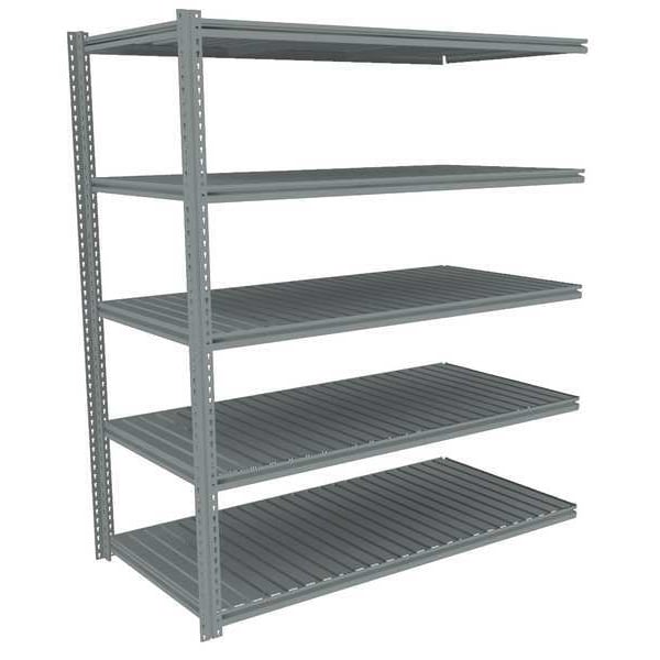 Boltless Shelving, Z-Beam, Overall Depth 48 in, Overall Height 84 in, Overall Width 60 in, Shelf Gauge 11 ga, Shelf Adjustment Increments 1 1/2 in, Steel, Steel, Steel, (2) Posts, (20) Beams, Includes Decking Yes, 750 lb, Whole Unit Load Capacity 3,750 lb, Add-On, Open, SCS Indoor Advantage(R) Certified, Post Gauge 16 ga, Number of Shelves 5, Maximum Post Load Capacity 8,000 lb with Beams Evenly Spaced at 24 in, Powder Coated, Medium-Duty, Gray