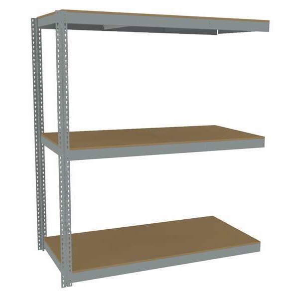 Boltless Shelving, Channel, Overall Depth 36 in, Overall Height 84 in, Overall Width 72 in, Shelf Gauge 14 ga, Shelf Adjustment Increments 1 1/2 in, Steel, Particleboard, Steel, (2) Posts, (3) HD Deck Levels, Includes Decking Yes, 2,000 lb, Whole Unit Load Capacity 6,000 lb, Add-On, Open, Post Gauge 16 ga, Number of Shelves 3, Maximum Post Load Capacity 13,000 lb with Beam Evenly Spaced at 24 in, Powder Coated, Heavy-Duty, Gray