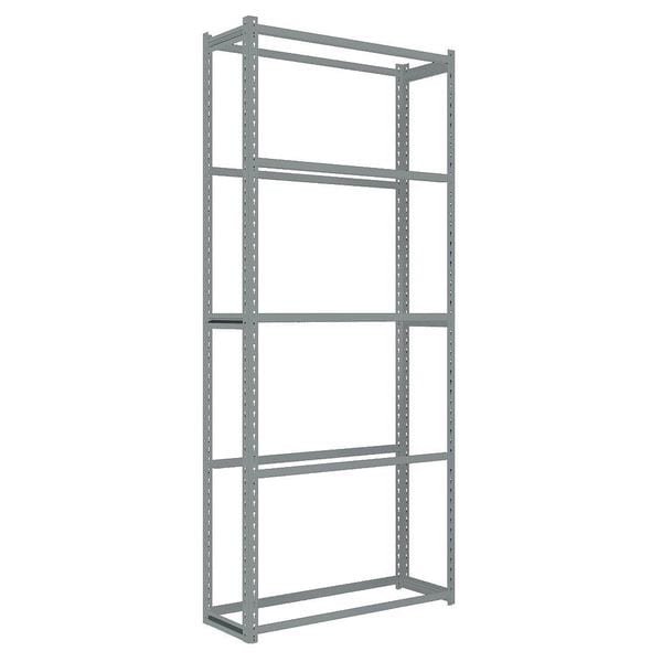 Boltless Shelving, Low Profile, Overall Depth 12 in, Overall Height 84 in, Overall Width 36 in, Shelf Gauge 14 ga, Shelf Adjustment Increments 1 1/2 in, Steel, None, Steel, (4) Posts, (5) Low Profile Deck Levels, Includes Decking No, 600 lb, Whole Unit Load Capacity 3,000 lb, Starter, Open, SCS Indoor Advantage(R) Certified, Post Gauge 14 ga, Number of Shelves 5, Maximum Post Load Capacity 8,000 lb with Beams Evenly Spaced at 24 in, Powder Coated, Light-Duty, Gray