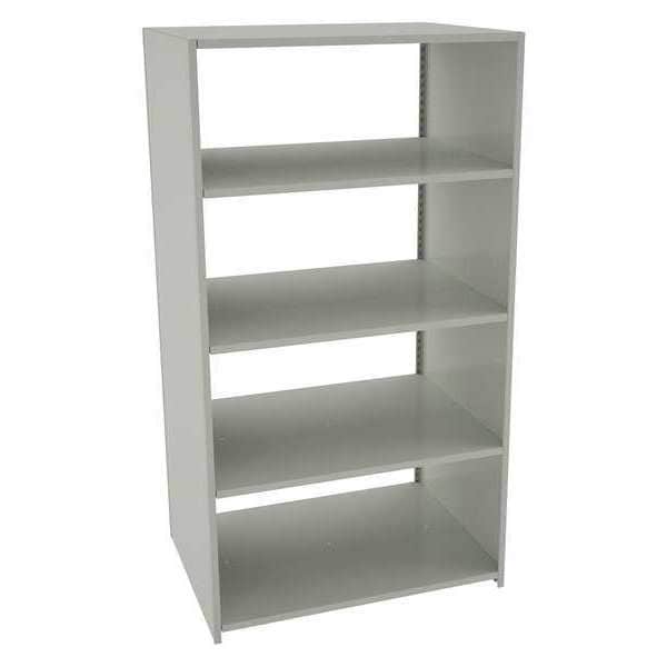 Boltless Shelving, Low Profile, Overall Depth 36 in, Overall Height 90 in, Overall Width 48 in, Shelf Gauge 14 ga, Shelf Adjustment Increments 1 1/2 in, Steel, Steel, Steel, (2) Uprights, (8) Shelf Reinforcements, Shelf Supports, Includes Decking Yes, 700 lb, Whole Unit Load Capacity 3,500 lb, Starter, Closed, Post Gauge 18 ga, Number of Shelves 5, Maximum Post Load Capacity 3,500 lb with Beams Evenly Spaced at 24 in, Powder Coated, Medium-Duty, Light Gray
