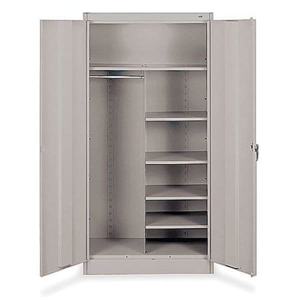 1 Bottom Shelf, 1 Fixed Shelf, 17 in Coat Rod, 4 Half Width Adjustable Shelves, Key Lock with 2 Keys