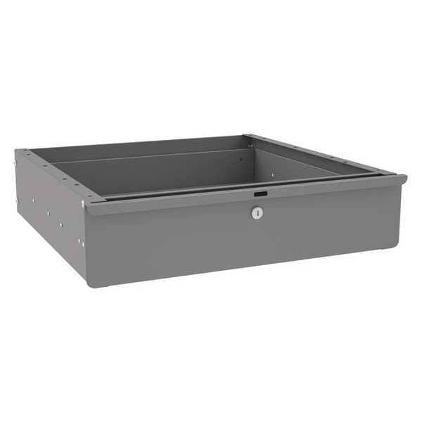 Drawer, Product Type Drawer, Assembly Fully Assembled, Color Gray, Compatible with Manufacturer Part Number WB-1, WBA-1, WBAT-1, Drawer Slide Bearing Type Ball Bearing, Finish Powder Coated, For Use With Workbenches, Includes Mounting Hardware Yes, Lock Type Keyed, Material Steel, Metal Material Gauge 24 ga, Mounting Location Under Bench, Overall Depth 22 in, Overall Height 6 in, Overall Load Capacity 70 lb, Overall Width 25 in, Stackable Yes