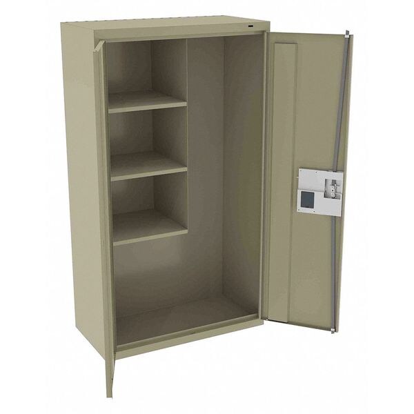 Storage Cabinet, Base Type Frame, Body Panel Type Solid, Cabinet Color Sand, Cabinet Material Steel, Cabinet Storage Components Shelves, Door Handle Type Recessed Pull, Door Type Solid, Duty Rating Light Duty, For Use Indoors/Outdoors No, Frame Assembled Assembled, Load Capacity per Shelf 75 lb, Lock Type Electronic Keypad, Mobility Stationary, Mounting Location Freestanding, Number of Shelves 3, Overall Depth 18 in, Overall Height 64 in, Overall Width 36 in, Cabinet Finish Powder Coated