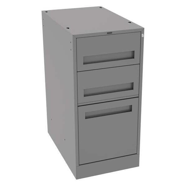 Modular Cabinet, Assembly Fully Assembled, Color Gray, Features All-Welded, Finish Powder Coated, Includes Key, Includes Mounting Hardware No, Lock Type Keyed, Material Steel, Maximum Drawer Load Capacity 70 lb, Metal Material Gauge 24 ga, Mount Type Mounting Channels, Mounting Location Hanging/Undermount, Number of Compartments 3, Number of Drawers 3, Number of Shelves 0, Overall Depth 24 in, Overall Height 32 in, Overall Load Capacity 1,000 lb, Overall Width 15 in, Pedestal Type Cabinet