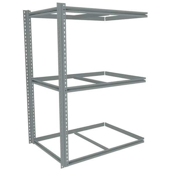 Boltless Shelving, Z-Beam, Overall Depth 30 in, Overall Height 60 in, Overall Width 42 in, Shelf Gauge 14 ga, Shelf Adjustment Increments 1 1/2 in, Steel, None, Steel, (2) Posts, Includes Decking No, 900 lb, Whole Unit Load Capacity 2,700 lb, Add-On, Open, ANSI BIFMA, Post Gauge 16 ga, Number of Shelves 3, Maximum Post Load Capacity 8,000 lb with Beams Evenly Spaced at 24 in, Powder Coated, Medium-Duty, Sand
