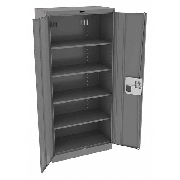 Storage Cabinet, Base Type Leveling, Body Panel Type Solid, Cabinet Color Medium Gray, Cabinet Material Steel, Cabinet Storage Components Shelves, Door Handle Type Recessed Pull, Door Type Solid, Duty Rating Light Duty, For Use Indoors/Outdoors No, Frame Assembled Assembled, Load Capacity per Shelf 200 lb, Lock Type Electronic Keypad, Mobility Stationary, Mounting Location Freestanding, Number of Shelves 4, Overall Depth 18 in, Overall Height 78 in, Overall Width 36 in