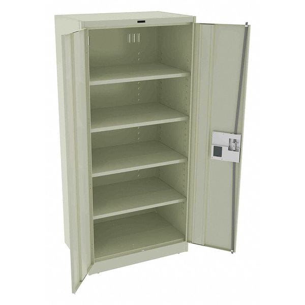 Storage Cabinet, Base Type Leveling, Body Panel Type Solid, Cabinet Color Putty, Cabinet Material Steel, Cabinet Storage Components Shelves, Door Handle Type Recessed Pull, Door Type Solid, Duty Rating Light Duty, For Use Indoors/Outdoors No, Frame Assembled Assembled, Load Capacity per Shelf 200 lb, Lock Type Electronic Keypad, Mobility Stationary, Mounting Location Freestanding, Number of Shelves 4, Overall Depth 24 in, Overall Height 78 in, Overall Width 36 in, Cabinet Finish Powder Coated