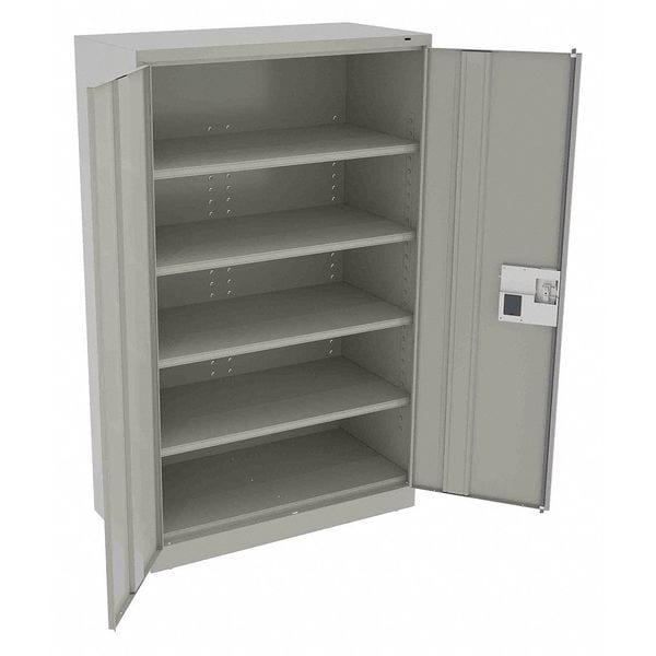 Storage Cabinet, Base Type Leveling, Body Panel Type Solid, Cabinet Color Light Gray, Cabinet Material Steel, Cabinet Storage Components Shelves, Door Handle Type Recessed Pull, Door Type Solid, Duty Rating Medium Duty, For Use Indoors/Outdoors No, Frame Assembled Assembled, Load Capacity per Shelf 400 lb, Lock Type Electronic Keypad, Mobility Stationary, Mounting Location Freestanding, Number of Shelves 4, Overall Depth 24 in, Overall Height 78 in, Overall Width 48 in