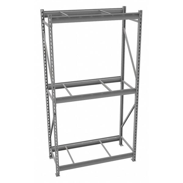 Bulk Storage Rack, Shelving Type Starter, Overall Width 48 in, Overall Depth 24 in, Overall Height 96 in, Decking Material None, No. of Shelves 3, Shelf Capacity 4150 lb, Load Capacity 12,450 lb, Shelving Frame Material Steel, Gray, Finish - Shelving and Racks Powder Coated, Shelf Adjustments 2 in, Shelving Post Gauge 14, For Use With Tennesco Bulk Storage and Boltless Racks, Includes (2) End Frames, (3) Shelves