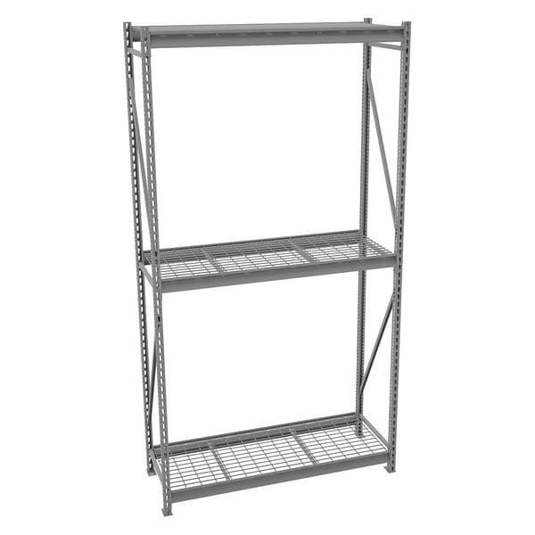 Bulk Storage Rack, Shelving Type Starter, Overall Width 60 in, Overall Depth 24 in, Overall Height 120 in, Decking Material Steel, No. of Shelves 3, Shelf Capacity 3800 lb, Load Capacity 11,400 lb, Shelving Frame Material Steel, Gray, Finish - Shelving and Racks Powder Coated, Shelf Adjustments 2 in, Shelving Post Gauge 14, For Use With Tennesco Bulk Storage and Boltless Racks, Includes (2) End Frames, (3) Shelves