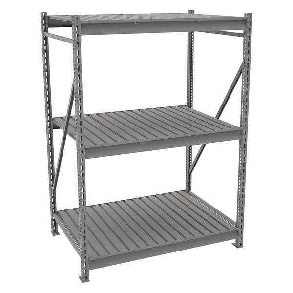 Bulk Storage Rack, Shelving Type Starter, Overall Width 48 in, Overall Depth 36 in, Overall Height 72 in, Decking Material Steel, No. of Shelves 3, Shelf Capacity 4150 lb, Load Capacity 12,450 lb, Shelving Frame Material Steel, Gray, Finish - Shelving and Racks Powder Coated, Shelf Adjustments 2 in, Shelving Gauge 22, Shelving Post Gauge 14, For Use With Tennesco Bulk Storage and Boltless Racks, Includes (2) End Frames, (3) Shelves