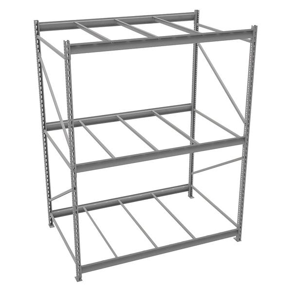 Bulk Storage Rack, Shelving Type Starter, Overall Width 72 in, Overall Depth 48 in, Overall Height 96 in, Decking Material None, No. of Shelves 3, Shelf Capacity 2750 lb, Load Capacity 8250 lb, Shelving Frame Material Steel, Gray, Finish - Shelving and Racks Powder Coated, Shelf Adjustments 2 in, Shelving Post Gauge 14, For Use With Tennesco Bulk Storage and Boltless Racks, Includes (2) End Frames, (3) Shelves