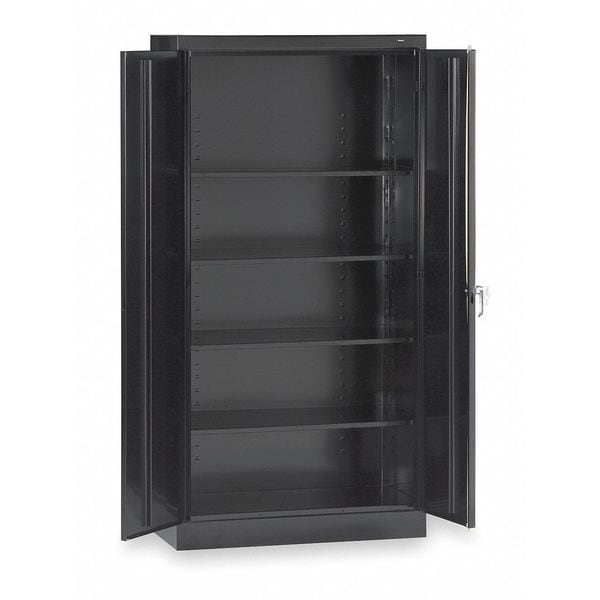 Storage Cabinet, Base Type Frame, Body Panel Type Solid, Cabinet Color Black, Cabinet Material Steel, Cabinet Storage Components Shelves, Door Handle Type Swing, Door Type Solid, Duty Rating Light Duty, For Use Indoors/Outdoors No, Frame Assembled Assembled, Load Capacity per Shelf 200 lb, Lock Type Keyed, Mobility Stationary, Mounting Location Freestanding, Number of Shelves 4, Overall Depth 24 in, Overall Height 72 in, Overall Width 36 in, Audit Trail Storage None, Cabinet Finish Powder Coated