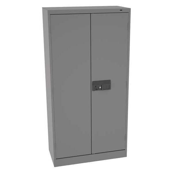 Storage Cabinet, Base Type Frame, Body Panel Type Solid, Cabinet Color Medium Gray, Cabinet Material Steel, Cabinet Storage Components Hanging Rods, Shelves, Door Handle Type Recessed Pull, Door Type Solid, Duty Rating Light Duty, For Use Indoors/Outdoors No, Frame Assembled Assembled, Load Capacity per Shelf 150 lb, Lock Type Electronic Keypad, Mobility Stationary, Mounting Location Freestanding, Number of Shelves 1, Overall Depth 18 in, Overall Height 72 in, Overall Width 36 in