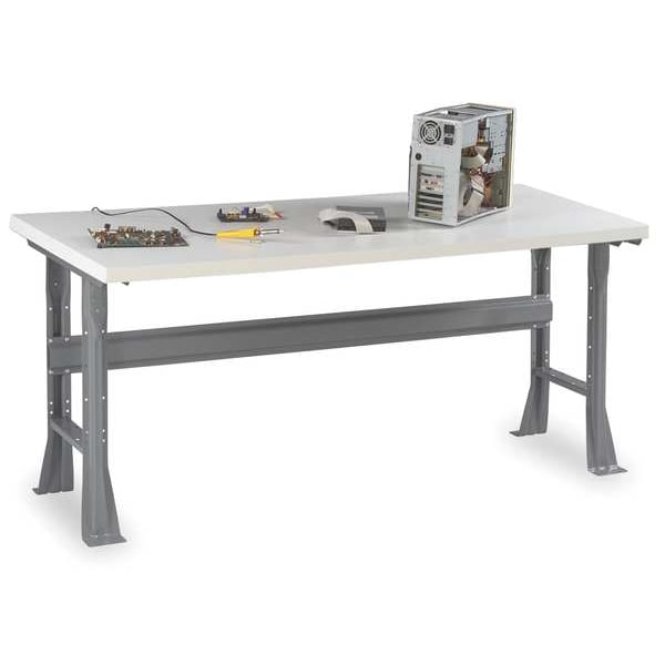 Workbench, Height Adjustability Fixed Height, Top Material Laminate, Assembly Unassembled, Color Gray, Frame Material Steel, Leg Type Flared Leg, Maximum Adjustable Height Not Applicable, Minimum Adjustable Height Not Applicable, Non-Metal Top Thickness 1 1/2 in, Number of Cabinets 0, Number of Drawers 0, Number of Knockouts 4, Included Components Stringer, Number of Outlets 0, Number of Shelves 0, Overall Depth 30 in, Overall Fixed Height 33 1/2 in, Overall Load Capacity 4,000 lb