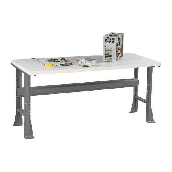 Workbench, Height Adjustability Fixed Height, Top Material Laminate, Assembly Unassembled, Color Gray, Frame Material Steel, Leg Type Flared Leg, Maximum Adjustable Height Not Applicable, Minimum Adjustable Height Not Applicable, Non-Metal Top Thickness 1 1/2 in, Number of Cabinets 0, Number of Drawers 0, Number of Knockouts 6, Included Components Stringer, Number of Outlets 0, Number of Shelves 0, Overall Depth 30 in, Overall Fixed Height 33 1/2 in, Overall Load Capacity 2,400 lb