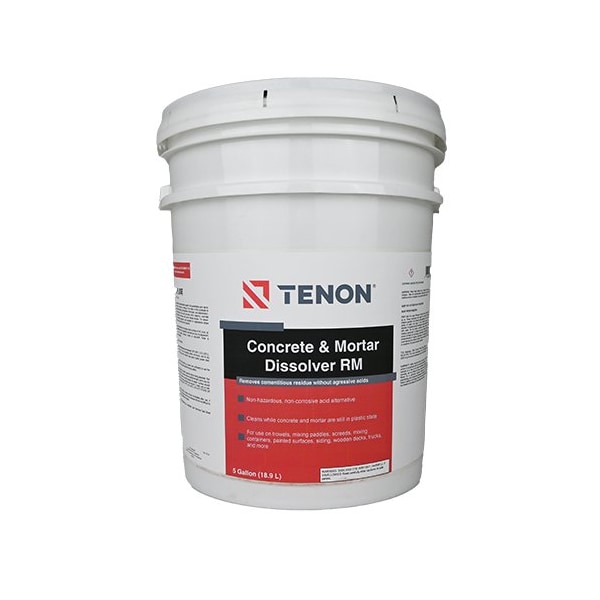 Tenon Concrete & Mortar Dissolver RM is an environmentally friendly, foaming, non-acid liquid cleaner designed to remove uncured concrete and mortar from tools and equipment.