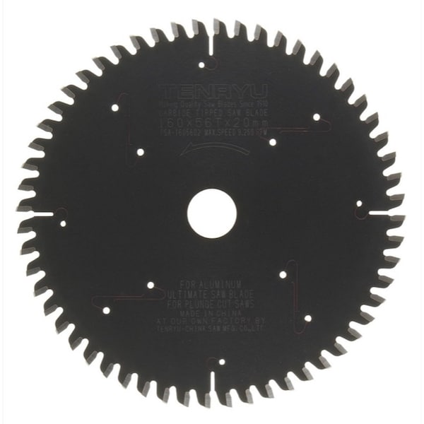 Tenryu PSA-16056D2 160mm Plunge-Cut Saw Blade for FESTOOL TS55 Specifications: Diameter: 160mmTeeth: 56Arbor: 20mmGrind: TCG Kerf: .087inRake: -3Plate: .063inApplication: AluminumTenryu spent 5 years doing research and development to produce the ultimate plunge-cut saw blades for various applications.Features: Resin filled laser cut slots to reduce cutting noise and to reduce vibration PTFE coated plate to reduce pitch build-up and to lower resistance Select grade of carbide tips for industrial quality jobs ATAF shear face grind for splinter-free cross cuts