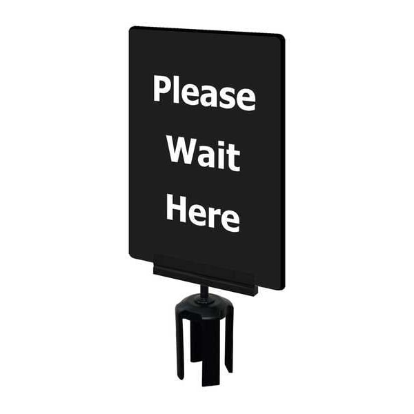 Acrylic Sign, For Use With Tensabarrier Posts, Includes Mounting Adapter, Legend Please Wait Here, Legend Color White, Color Black, Material Acrylic, Finish Unfinished, Overall Length 11 in, Overall Width 7 in