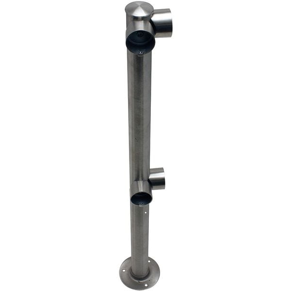 Rigid Barrier Corner Post, Overall Height 36 in, Bar Diameter 2 in, Base Diameter 5 in, Number of Lines 2, Product Type Rigid Barrier Corner Post, Material Stainless Steel, Finish Satin