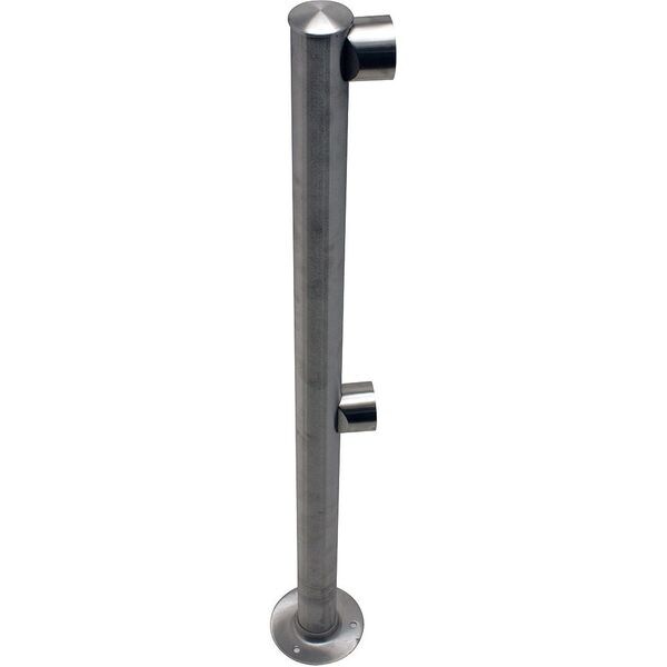 Rigid Barrier End Post, Overall Height 36 in, Bar Diameter 2 in, Base Diameter 5 in, Number of Lines 2, Product Type Rigid Barrier End Post, Material Stainless Steel, Finish Satin