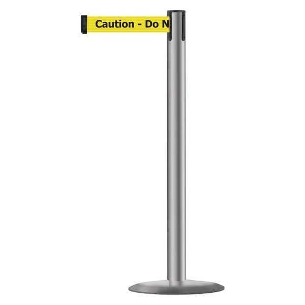 Barrier Post with Belt, Maximum Overall Height 38 in, Legend Caution Do Not Enter, Legend Color Black, Number of Belts 1, Belt Length 13 ft, Belt Width 2 in, Belt Color Yellow, Product Type Stanchion, Minimum Overall Height Not Applicable, Post Diameter 2 1/2 in, Post Material Metal Alloy, Post Finish Polished Stainless Steel, Base Type Standard, Base Diameter 14 in, Base Material Cast Iron, Base Finish Polished Stainless Steel, ADA Compliance Yes, Resistance Properties Weather Resistant