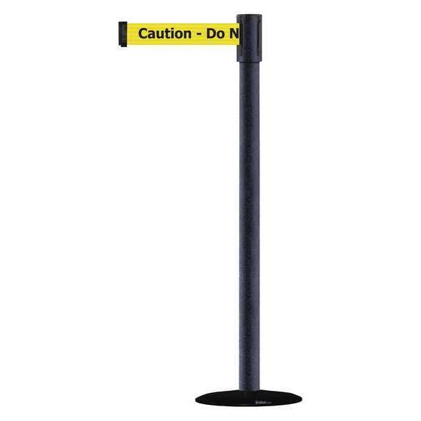 Barrier Post with Belt, Maximum Overall Height 38 in, Legend Caution Do Not Enter, Legend Color Black, Number of Belts 1, Belt Length 7 1/2 ft, Belt Width 2 in, Belt Color Yellow, Post Color Black, Product Type Stanchion, Minimum Overall Height Not Applicable, Post Diameter 2 in, Post Material Metal Alloy, Post Finish Powder Coated, Base Type Slim Profile, Base Diameter 14 in, Base Material Cast Iron, Base Finish Black ABS No Scuff Cover, Base Color Black, ADA Compliance Yes